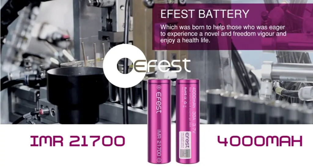 Efest Bateria 21700mAh 30A de alta Capacidade e Potência! Projetada para vapes e dispositivos de alta potência, esta bateria recarregável oferece uma capacidade impressionante de 21700mAh, garantindo longos períodos de uso entre as recargas.