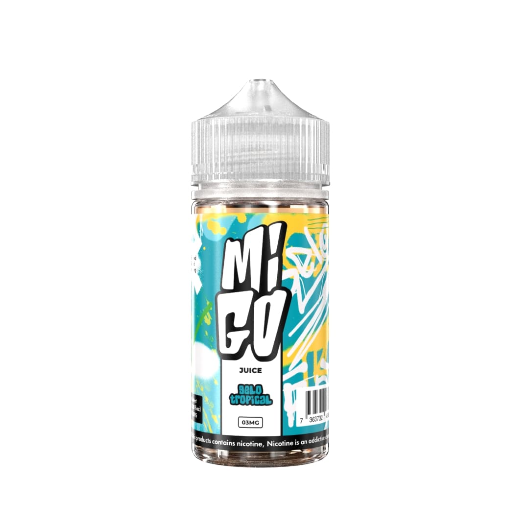 Migo Gelo Tropical é um juice de menta com frescor intenso e toque menthol gelado, arrematado por notas frutais tropicais — limpo, revigorante e ideal para quem curte trago frio com leve dulçor.