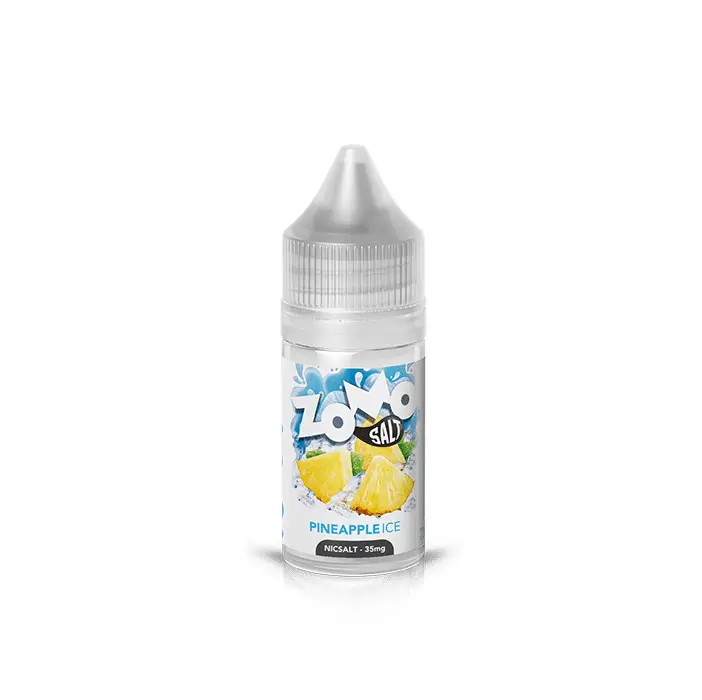 Conheça Zomo Salt Pineapple Ice, o abacaxi mais gelado que você já experimentou. Este juice de abacaxi gelado traz o sabor suculento e doce da fruta tropical, combinado com uma onda de frescor congelante na versão Nicsalt Ice.